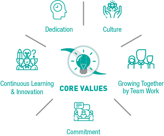 Dedication : Together with us, our dedicated and passionate team members demonstrate qualities like high work ethics, positive attitude, and strong interpersonal skills and with sheer diligence they work in alignment with our Vision and Mission.